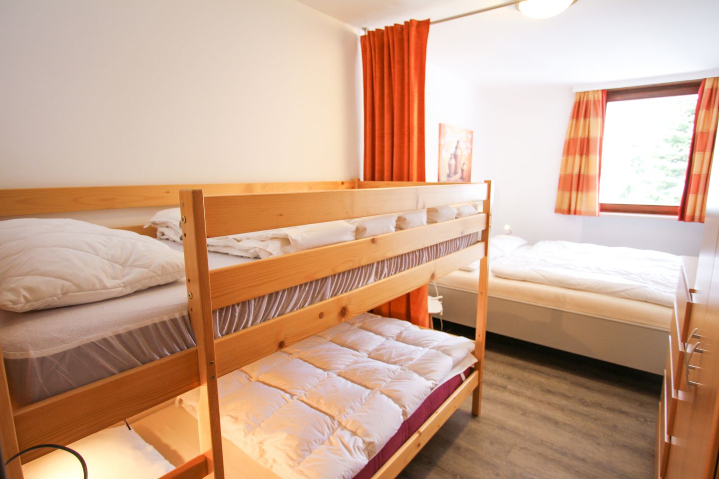 Slaapkamer met Tweepersoonsbed (2 keer 80x190), Stapelbed (90x200)Keuken