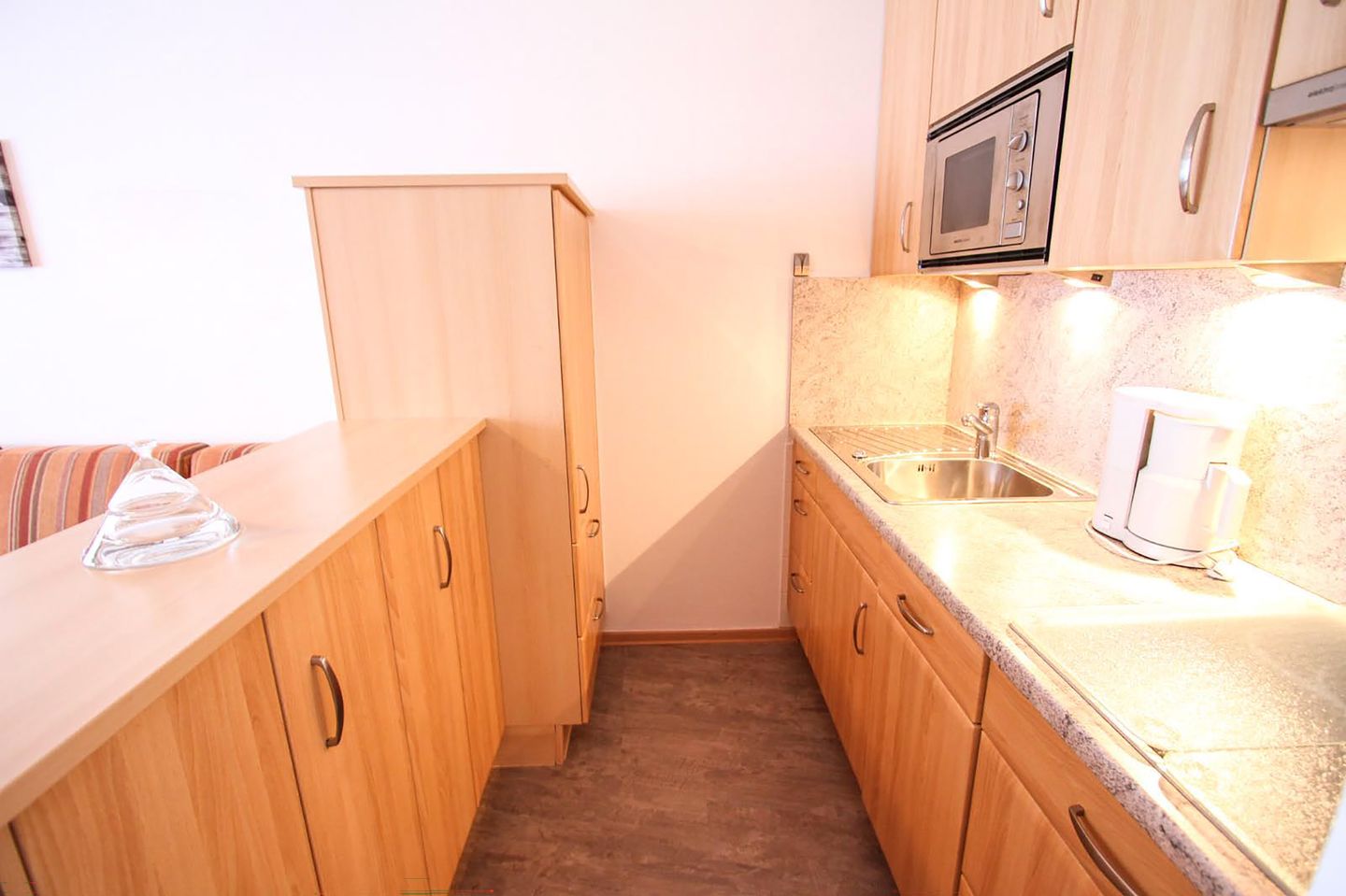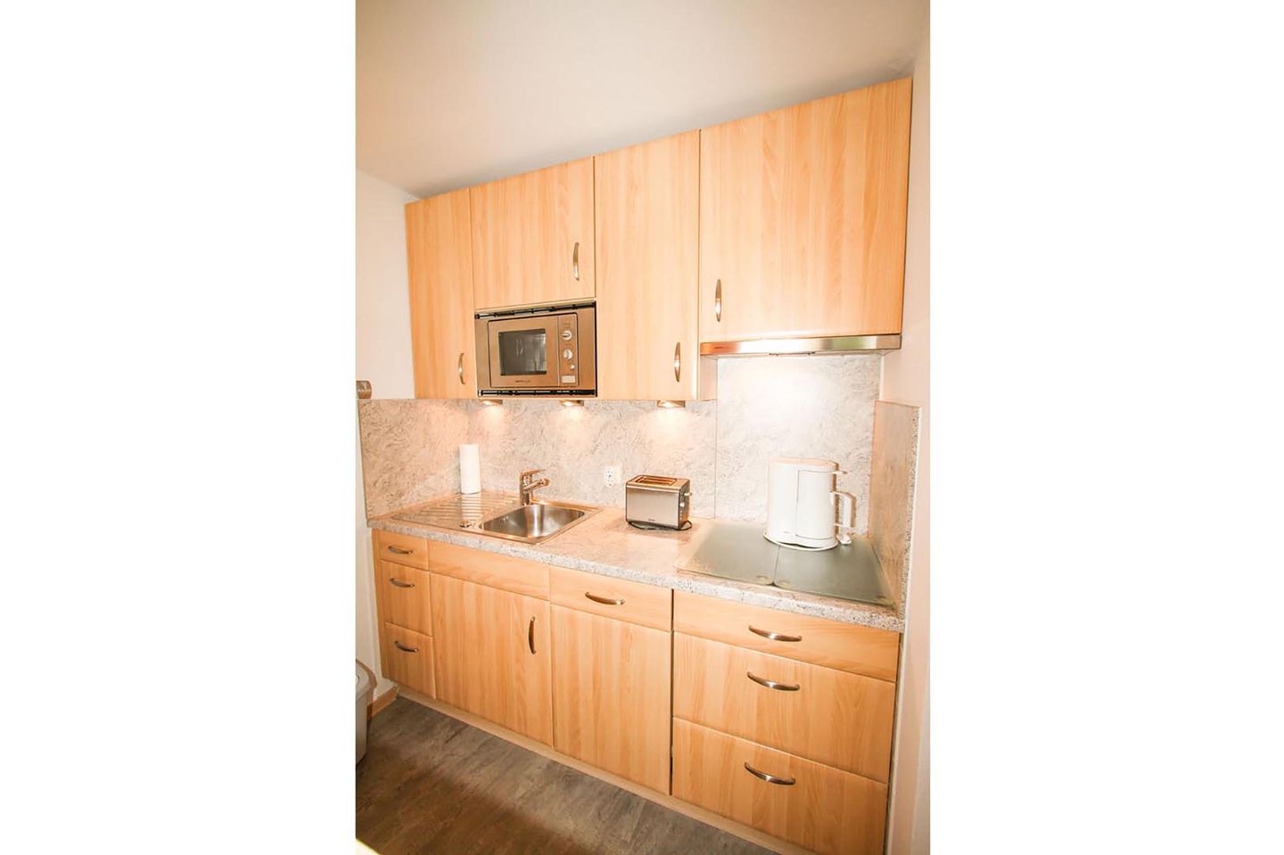 Woonkeuken met Balkon, Keramische kookplaat, Vaatwasmachine, Koelkast met vriesvak, Magnetron, Radio, Senseo koffiemachine, Broodrooster, TV, Eethoek, Waterkoker, FilterkoffiemachineVerdere inclusieve diensten: