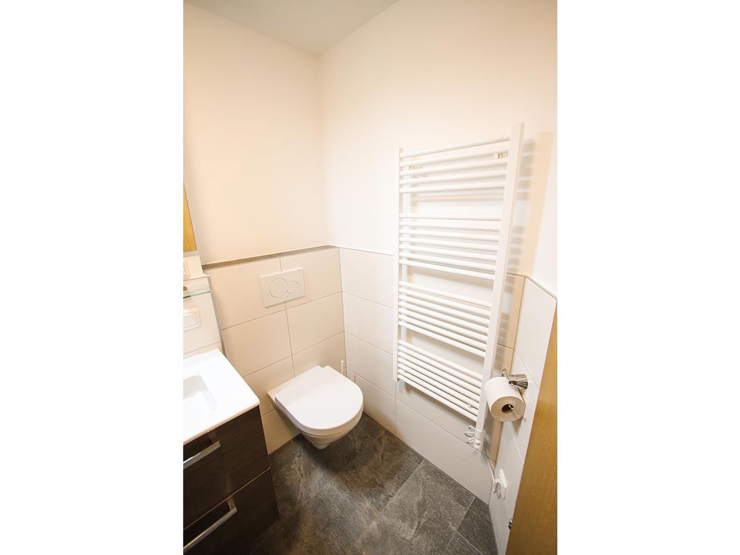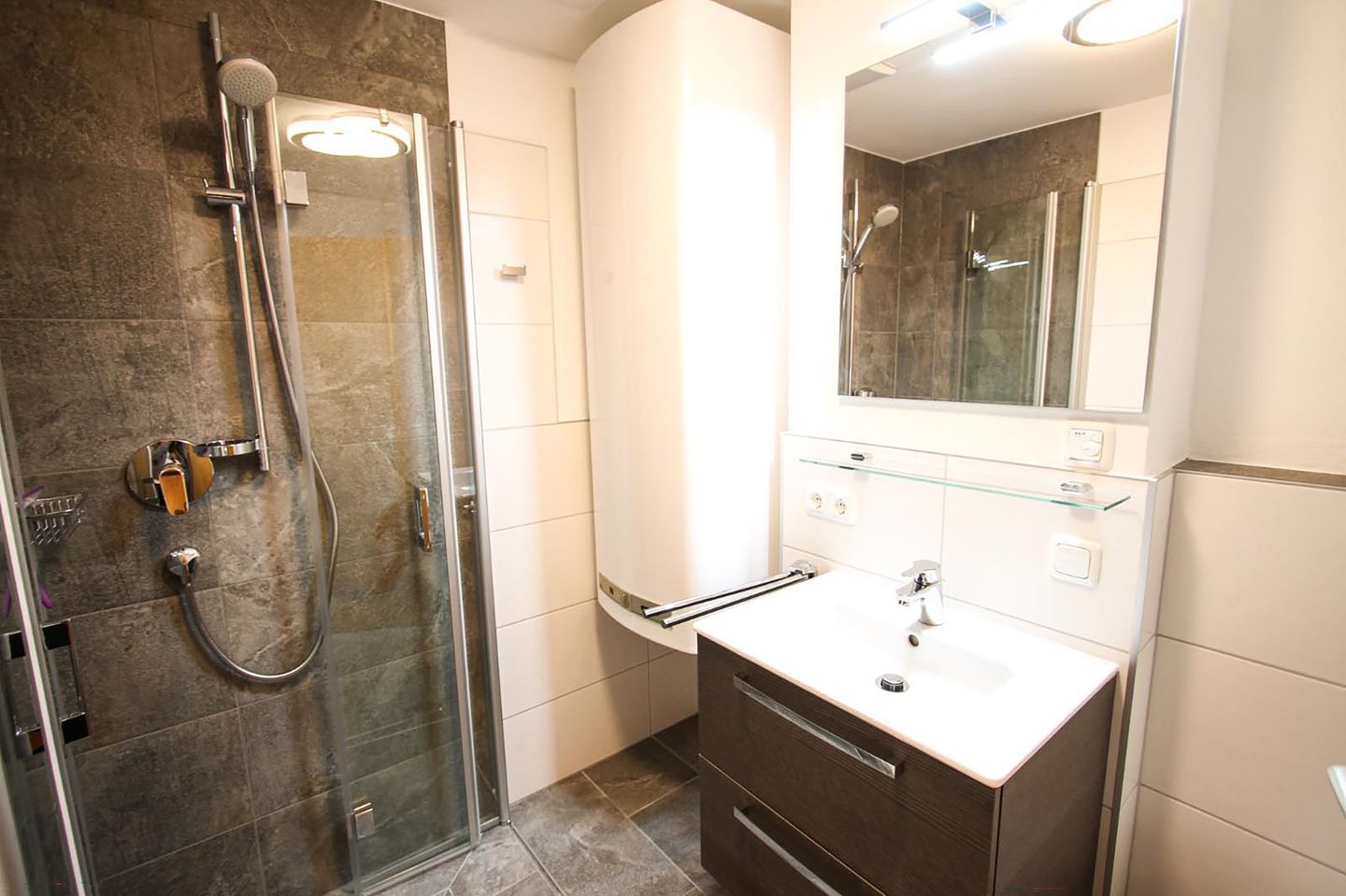 Badkamer met Wastafel, WC, Douche, HanddoekdrogerWoonkamer