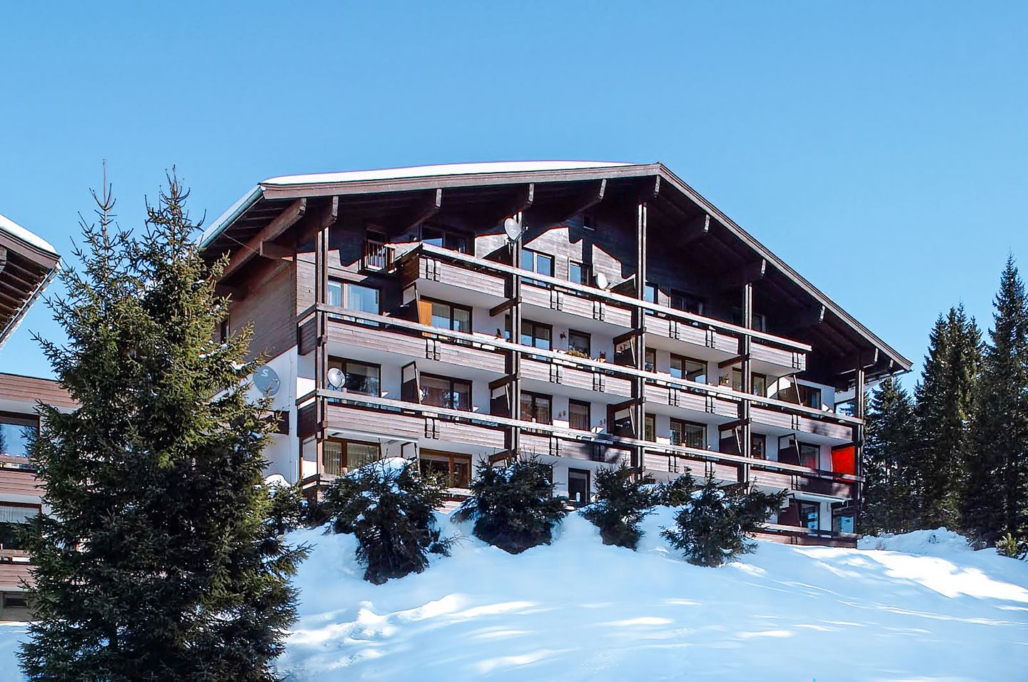 Dit charmante 2-kamer appartement ligt in een goed onderhouden vakantiecomplex bij de ingang van Königsleiten. De ligging is perfect: in een paar stappen bereik je het trefpunt van de skischool Königsleiten en een van de plaatselijke skiwinkels - ideaal als je niet al je materiaal hebt meegenomen.